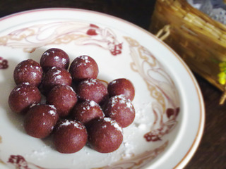 7成热时放丸子,这时转动锅子,让丸子均匀受热,同时用大勺把热油浇在丸子上,炸至紫红色出锅。